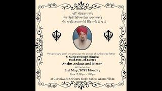 LIVE NOW!! Antim Ardass | S.Surjeet Singh Bindra | Anand Vihar | 03.May.2021 Get Baani.Net kirtan Mobile App for Apple iOS and Android devices: ...