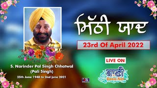 LIVE!! Salana Mithi Yaad | S.Narinder Pal Singh (Pali Singh ) | G.Rakabganj Sahib | 23.April.2022 Get Baani.Net kirtan Mobile ...